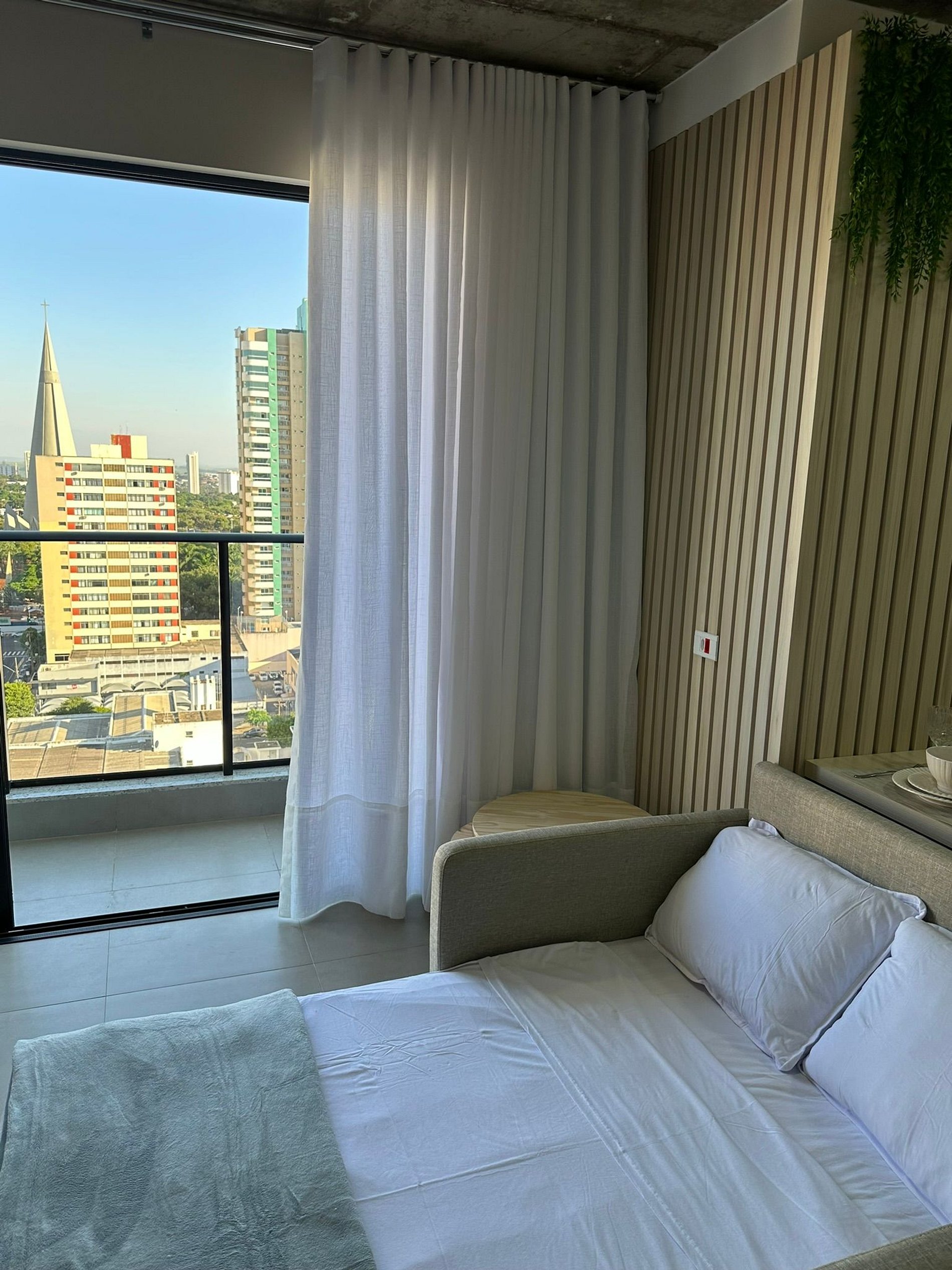 Studio com linda decoração pensado para curtas ou longas estadias. Perfeito para receber você e sua família. Estrutura para até 4 pessoas. Contamos com um quarto com cama de casal mais um sofá-cama. Apartamento todo climatizado, localização privilegiada, decoração completa e roupas de cama, cozinha muito bem equipada. Com localização privilegiada conta com uma vista incrível para a belíssima CATEDRAL.